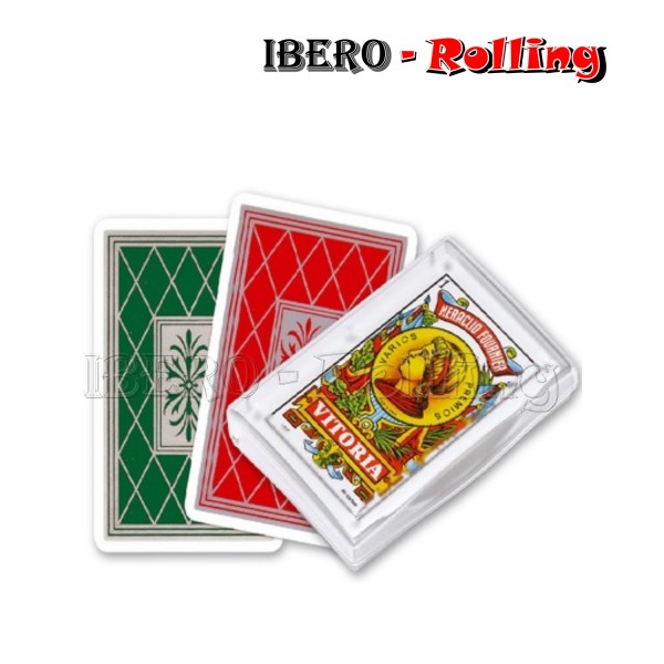 Baraja con 40 cartas de naipes españoles, estuchada en caja de cartón estampada para su protección.