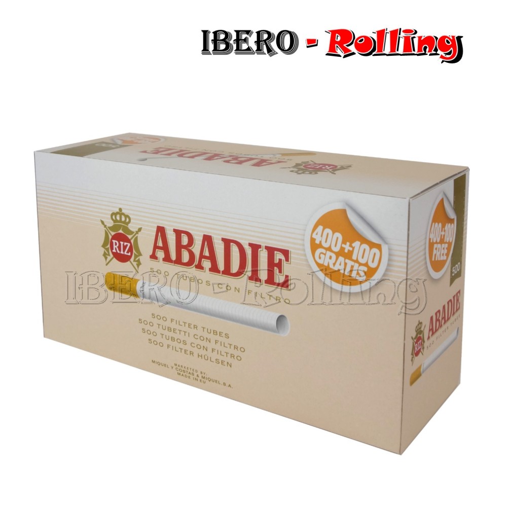 Abadie Caja de 400 tubos + 100 gratis para rellenar con tabaco con filtro de 8 mm.